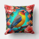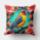 Zangvogel neergestreken te midden van heldere bloe kussen