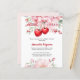 Een elegante witte achtergrond, versierd met een roze strik met kersen en roze bloemen. Personaliseer en voeg een naam en partijgegevens toe. Tekst: She's the Cherry on top Terug: zacht roze achtergrond. 1 vel = 1 uitnodiging bedrukt rand tot rand.
