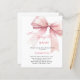 Een elegante witte achtergrond, versierd met een roze gekleurde boog. Personaliseer en voeg een naam en partijgegevens toe. Tekst: Ze knoopt de knoop door. 1 vel = 1 uitnodiging afgedrukt rand tot rand.