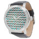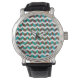 Zebra Chevron Brown en Blauwgroen print Horloge