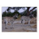 Double Take Zebras Natuur Foto-prints en cadeautjes bevatten een prachtige foto van twee zebra's die beide kijken naar de kijker die tijdens een snackpauze door Kurt Keller is genomen met een camera van 35 mm terwijl hij op een Afrikaanse safari in Botswana, Zuid-Afrika en Zimbabwe staat. Elke zebra draagt zijn eigen patroon van strepen, ondanks de dubbele opname. Iedereen die van Afrikaanse dieren houdt, van wilde dieren, en van wie dan ook, zal deze prachtige foto waarderen van een twee zebra's die in de savanne staan.