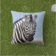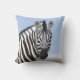 Zebra kijkt naar je met blauwe hemelfoto buitenkussen