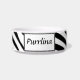 Aangepaste keramische kattenkom met een zwart-wit zebraafdrukpatroon, op maat van de naam van uw huisdier.