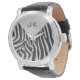 Zebra zwart-wit en lichtgrijs monogram horloge