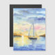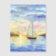 Zee bij zonsondergang. Een leuk jacht verlaat de baai en gaat naar zee. De waterverf is getekend en gescand. Waterverf Landschap in de open lucht gemaakt in 2024.