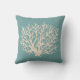 Koraal en een nautilus schelp versieren dit zeeen groene kussen. Gebruik dit nautische kussen in een strandhuis, slaapkamer, enz....Het ontwerp is van originele illustraties.
