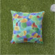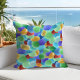 Dit kleurrijke zomerse buitenkussen heeft een zeeen glaspatroon met juweeltinten in de kleuren blauw, aqua, groen, paarse, geel en rood.