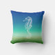 Een oud beeld van een zee paard in wit wordt geplaatst op een achtergrond van diepe blauwe, aqua en groene zee tinten om dit prachtige strand te maken met de thema's gooiend kussen. Overeenkomende objecten en andere design met een strandthema zijn beschikbaar in mijn Zazzle-winkel.