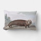 In deze enigszins griezelige afbeelding van de wilde natuur staat een drijfmestbruine zee otter op een zandstrand met een troebele hemel op de achtergrond. Hij heeft een ietwat angstaanjagend gezicht met gekweekte tanden.