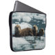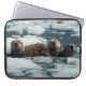 Gedrooid met een afbeelding van een familie van zee otters onder de ijsbergen in de prins William Sound van Alaska. Door Ted Raynor