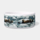 Gedrooid met een afbeelding van een familie van zeeen otters (Enhydra lutris) die drijven onder ijsbergen in de prins William Sound van Alaska. Door Ted Raynor