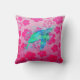 Een bedreigde zee schildpad geschilderd in de oceaanblauwen de groene en roze achtergrond van roze Hawaiian Honu Zee Turtles en roze Hibiscus bloemen.