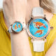Vet en helder zee schildpad met kleurenopties. Hier gemaakt als een horloge van een kind, maar dit geïllustreerde, twee schildpadvormig ontwerp, geplaatst op aquamarine zee water, ziet er ook goed uit op een horloge van een vrouw of een man.