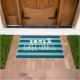 Zeeen en groeten deurmat in een lichte en donkere aqua streep.