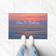 Dit aangepaste model is ontworpen met een afbeelding van een pastelkleurige zonsopgang boven Corolla Beach in de Outer Banks van North Carolina. "Zeeen & groeten" wordt toegevoegd in grote, gemakkelijk te lezen letters. De mat meet 24 x 36 inch en heeft een gladde vlek- en sliplatex. Het heeft ook een versterkte rand om te weerstaan aan het fraaien, is zowel vervaagd als slijpbestendig en kan gemakkelijk met een spray water worden schoongemaakt. Ideaal voor toegangen zoals porches, appartementen, kantoren, condooms, enz. Neem contact met me op via Zazzle als je vragen hebt over deze mat of als je dit ontwerp wilt overdragen naar een ander object. Ik ben blij dat ik het afbeelding kan helpen garanderen en dat het correct past.