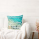 Voeg een strandvibe toe aan uw huis met dit gezellige katoenen kustkussen met waterverf tropische turquoise en zeeen schuimgolven, koraalzeester en typografie "The Beach is my happy place" in een nautisch marineblauw. Kunst door KL Stock