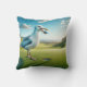 Een zeemeeuw staat op een weelderige groene golfbaan, met een golfbal in zijn snavel in de buurt van een gat op de groene oceaan achtergrond