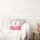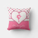 Het Skating van het cijfer gooit kussen in zeer roze polka-stippen met een wit hart en douanetekst.