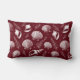 Kussen in een patroon van schelpen en delicate zeewierpatronen gerangschikt op een diepe kastanjebruine rode achtergrond, waardoor een opvallend contrast ontstaat. Het gedetailleerde lijnwerk voegt een ingewikkeld en naturalistisch gevoel toe aan de compositie.