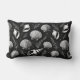 Kussen in schelpen en delicate zeewierpatronen gerangschikt op een zwarte achtergrond, waardoor een opvallend contrast ontstaat. Het gedetailleerde lijnwerk voegt een ingewikkeld en naturalistisch gevoel toe aan de compositie.