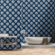 Een geweldig diepblauw behang met witte schelpen is ideaal voor een strandhuis, badkamer of elke kamer die een strandachtig gevoel nodig heeft.