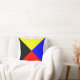 Een goed stevig kussen dat uitstekend past in ons Zen, maar toch kleurige interieur en een ander kussen van dezelfde ontwerper. Mooie kleuren, warmer dan op de afbeelding.