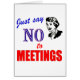 Zeg enkel Nr aan Vergaderingen, grappig sarcasme van de kantoorhumor in rode retro brieven met een vrouwelijke arbeider die u eraan herinnert om niet gevangen te worden in een vergadering op het werk