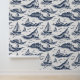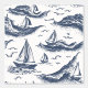 Dit is een elegant patroonontwerp van zeilboten die een golvend zee oversteken. Het heeft een blauwachtig kleurenschema en perfect voor studieruimten.