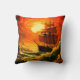 Dit kussen heeft een enorme zeilboot bij zonsondergang erop.