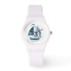 Zeilboot met marineblauw-blauw-windmolen, illustratie met een tribaal accentdecor.