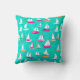 Patroon met afbeelding van roze en gele zeilboten boven aqua achtergrond.