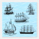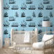 Zeilschip Illustraties op Blue Waves Behang