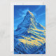 Dit digitale kunstwerk legt de majestueuze Matterhorn vast, een iconische alpenpiek die zich uitstrekt over de Zwitsers-Italiaanse grens. Het schilderij is in een levendige, impressionistische stijl weergegeven en benadrukt de grandeur van de berg door een dynamisch samenspel van licht en kleur. De top gloeit met goudgele tinten.