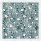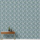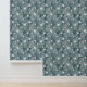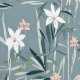 Wit zen bloempatroon met blauw-grijze achtergrond. Perfect voor een baby kamer of elke kamer waar je graag een rustig gevoel brengt.