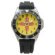De Zia in New Mexico beschouwen de zon als een heilig symbool. Hun symbool, een rode cirkel met groepen stralen die in vier richtingen wijzen, wordt geschilderd op ceremoniële vazen, op de grond rond kampvuren getrokken, en gebruikt om pasgeborenen aan de zon te introduceren. Vier is het heilige nummer van de Zia en kan worden herhaald in de vier punten die van de cirkel uitstralen. Het getal vier wordt belichaamd in: de vier punten van het kompas (noord, zuid, oost en west); de vier seizoenen van het jaar (lente, zomer, herfst en winter); de vier periodes van elke dag (ochtend, middag, avond en nacht); de vier seizoenen van het leven (kindertijd, jeugd, middelbare jaren en ouderdom); en de vier heilige verplichtingen die men moet ontwikkelen (een sterk lichaam, een heldere geest, een zuivere geest, en een toewijding aan het welzijn van anderen), volgens het geloof van de Zia. Als u deze versie niet leuk vindt, ga dan naar een andere versie op: http://www.zazzle.com/zia_symbol_2_wristwatch-256985446911918017