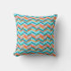 Een heldere zigzag chevron-stijl patterned kussen in pastel blauwgroen blauw groen sinaasappel en zalm. Zou er geweldig uitzien in een slaapkamer of lounge om een accent van kleur toe te voegen.