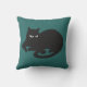 Dramatische afbeelding van een zwarte kat met witte doorboorde ogen in silhouet op een groene kussen.