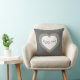 Dit kussen heeft een wit hart dat in zilver is omlijnd met de sjabloon tekst "Happy 25th" in een cursief zilveren lettertype. De andere kant van het kussen heeft een herhalend zilveren hartpatroon. Het zilveren hartkussen is een geweldig 25-jarig huwelijksjubileum cadeau.