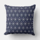 Gooi kussen met mooie zilveren bloemencirkels op een blauwe achtergrond. Dit ontwerp staat bekend als de bloem van het leven en wordt vereerd door grote religies en vele culturen. Het betekent dat we allemaal verbonden zijn.