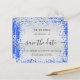 Een faux zilveren achtergrond, versierd met koningsblauwe confetti. Personaliseer en voeg de datum, plaats en uw namen toe. Zwarte letters. De tekst: Save the Date is geschreven met een groot trendy handgeschreven stijlscript met swashes.