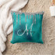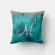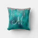 Zilveren Teal Metaal Glitter Look Drips Monogram Kussen