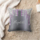 Een elegant, meisje en glamoureus. Faux zilver en paarse faux glitter drip, druppelend voor verf. Chic dark faux zilveren metalen achtergrond. Personaliseer en voeg jouw naam toe. De naam wordt geschreven met een modern handgeschreven stijlmanuscript met letters. Zwarte letters. Als u de wasbeurt wilt behouden, verwijdert u alleen de voorbeeldnaam, laat u de spaties of de emoji's voor en na de naam staan