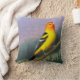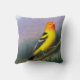 Origineel kunstschilderij van een zangend Western Tanager van vogelkunstenaar Carolyn McFann van Two Spinnende Cats Studio, geprint op een Amerikaanse Mojo-kussen van hoge kwaliteit voor wilde vogelfans.