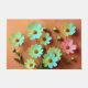 Deze levendige botanische studie viert de Zinnia elegans, weergegeven in een losse, expressieve stijl die zowel natuurlijke schoonheid als artistieke interpretatie vastlegt. Turkoois, boterbloem geel en zacht roze bloemblaadjes stralen uit rijke bruine centra, stoutmoedig contrasterend tegen een warme, aardse achtergrond van terracotta en verbrande sienna. De getextureerde penseelstreken roepen een gevoel van beweging op, alsof de bloemen zachtjes zwaaien in een zonovergoten tuin.
