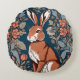 Zittende haas William Morris geïnspireerd Floral Rond Kussen