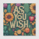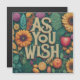 Een dromerige bedankkaart met de iconische zin "As You Wish". Zachte pasteltinten creëer een magische sfeer. De kaart kan delicate bloemenelementen bevatten of grillige personages geïnspireerd door de film. De typografie is elegant en vloeiend, als aanvulling op het algemene romantische gevoel.