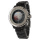 Verbluffend modern kosmisch ontwerp: polshorloge met planeet Pluto in de ruimte gestopt met populaire lettertypetyppografie die gemakkelijk kan worden aangepast of verwijderd volgens uw voorkeur. De tekst heeft betrekking op de astrologische associatie met Pluto als zijnde het hemellichaam van de zodige dat mysterieus, geheimzinnig en assertief gedrag beïnvloedt - zoals opmerkelijk voor het Scorpio-teken waarvan de kenmerken Pluto-schilfers.