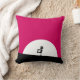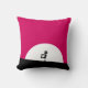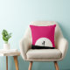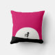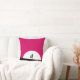 Een kussen met een cool zombiewezen. Roze en zwarte vetgedrukte levendige kleurenschema. Een zombiesilhouet met wapens die uitgerekt zijn op de jacht naar breinen. Een grote witte maan verlicht van achteren.