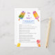 Summer Popsicle Baby shower Game Over of Onder Dit Baby shower Game Kaart vult mijn schattige "Popsicle Ice Cream Summer Party" Baby shower collectie. Je vindt de Uitnodiging, Inserts, Tekens en bijpassende items in mijn Zazzle shop.