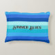 Frisse zomerblues, een kleurenpalet geleend uit de oceaan en toegevoegd aan een accentkussen. Aan de ene kant gaan de strepen horizontaal, aan de andere kant verticaal. Zowel voor als achter met een eenvoudige voorbeeldtekst met de tekst "Summer Blues". Bewaar het of pas het aan met een naam of andere tekst naar keuze.